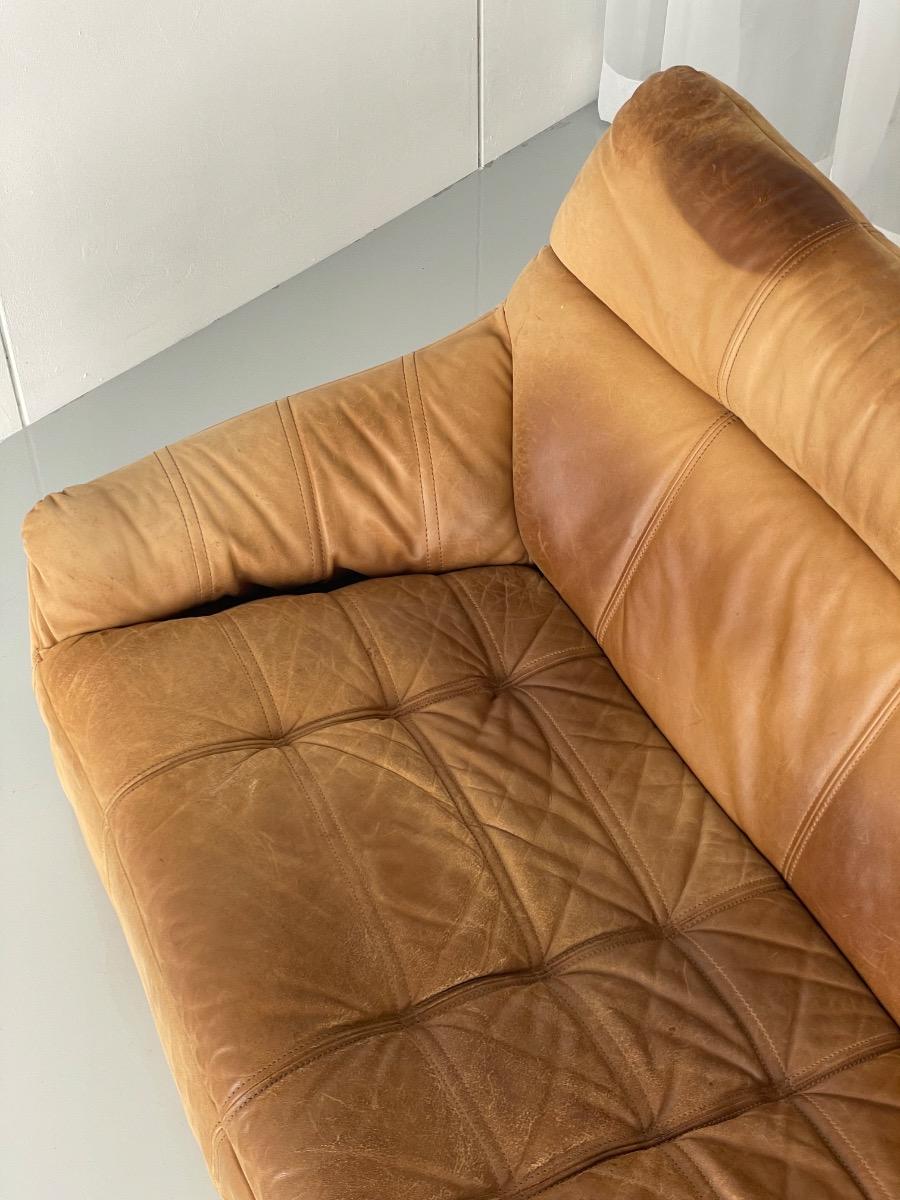 Vintage 2-zitsbank design Rolf Benz Cognac leer, 1960- 1st edition