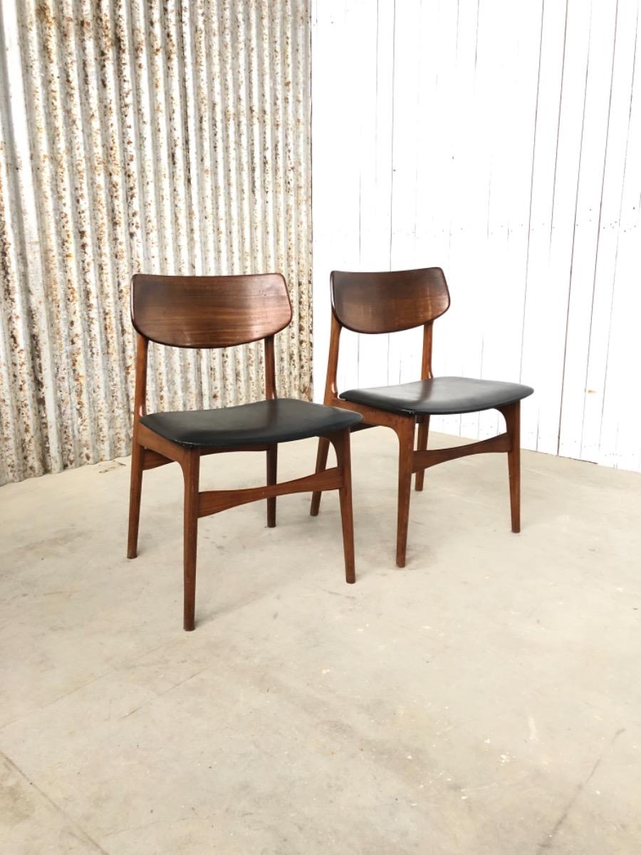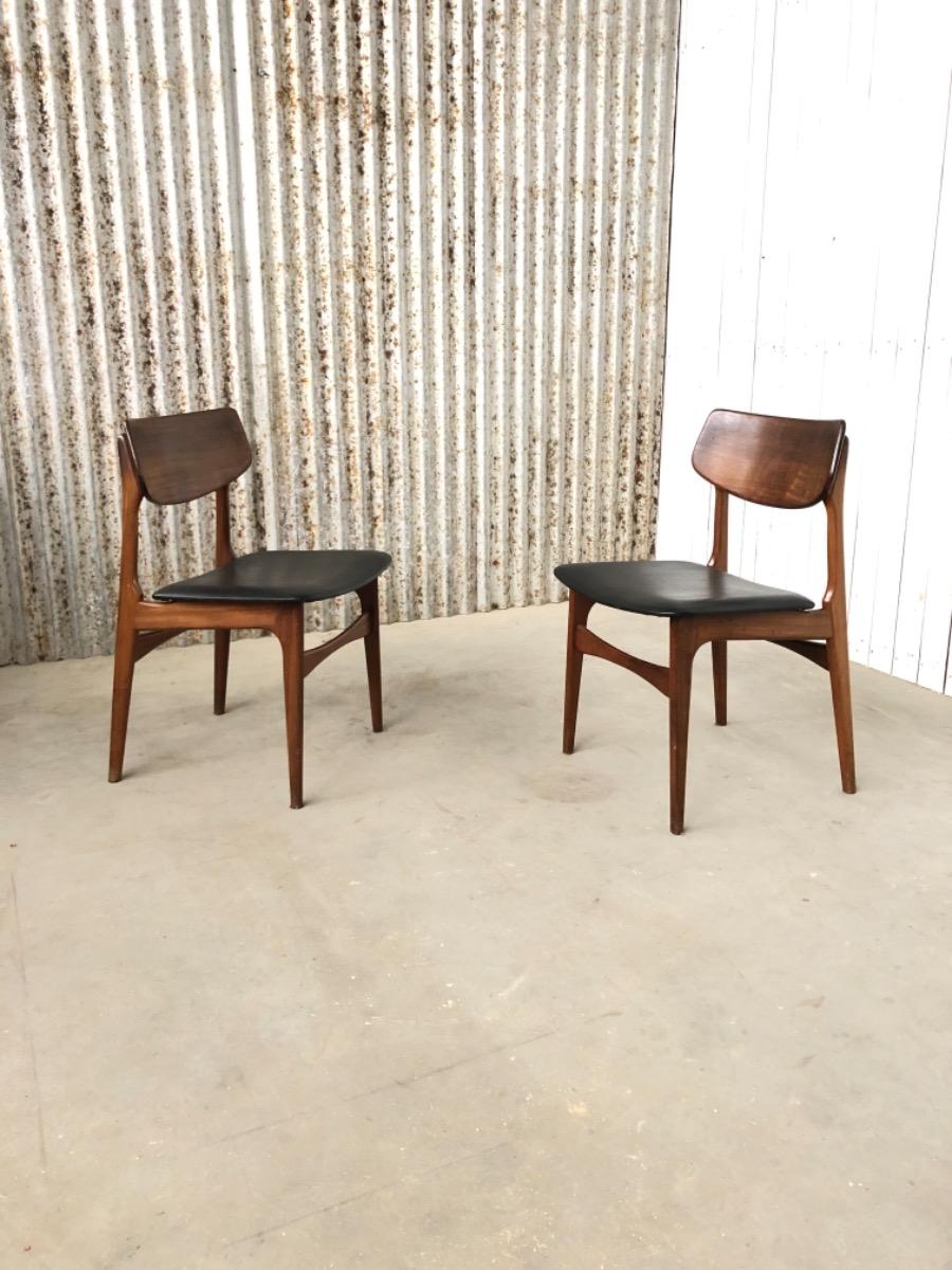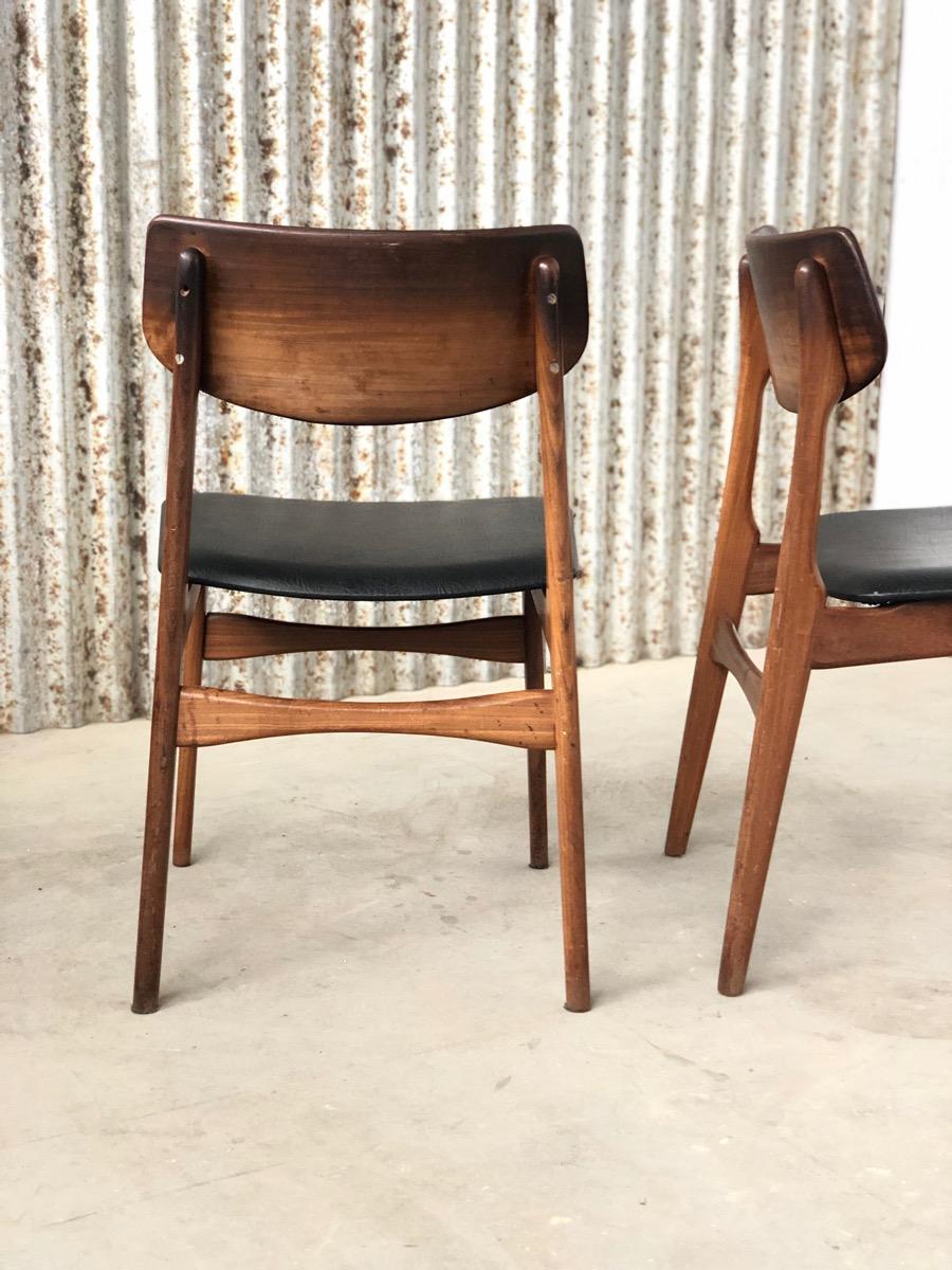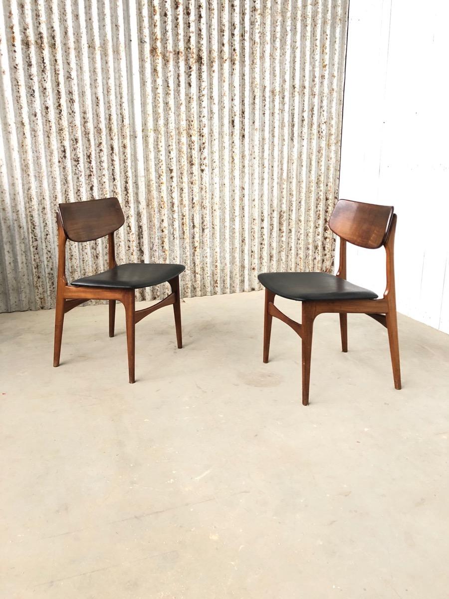 2 Vintage Dining Chairs, by Louis van Teeffelen, AWA in Wood and leather Midcentury, in Good condition