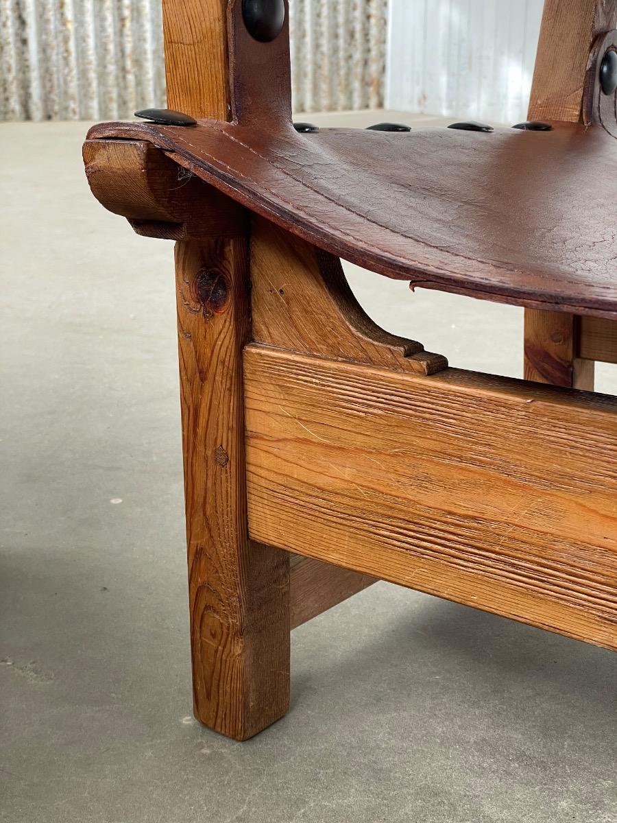 1 Lounge Fauteuil vintage brutalist, en Hout en leer, Europa 1950, en Goede staat condition