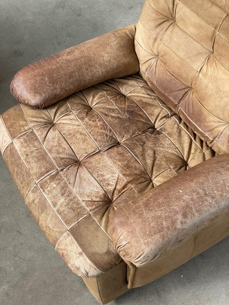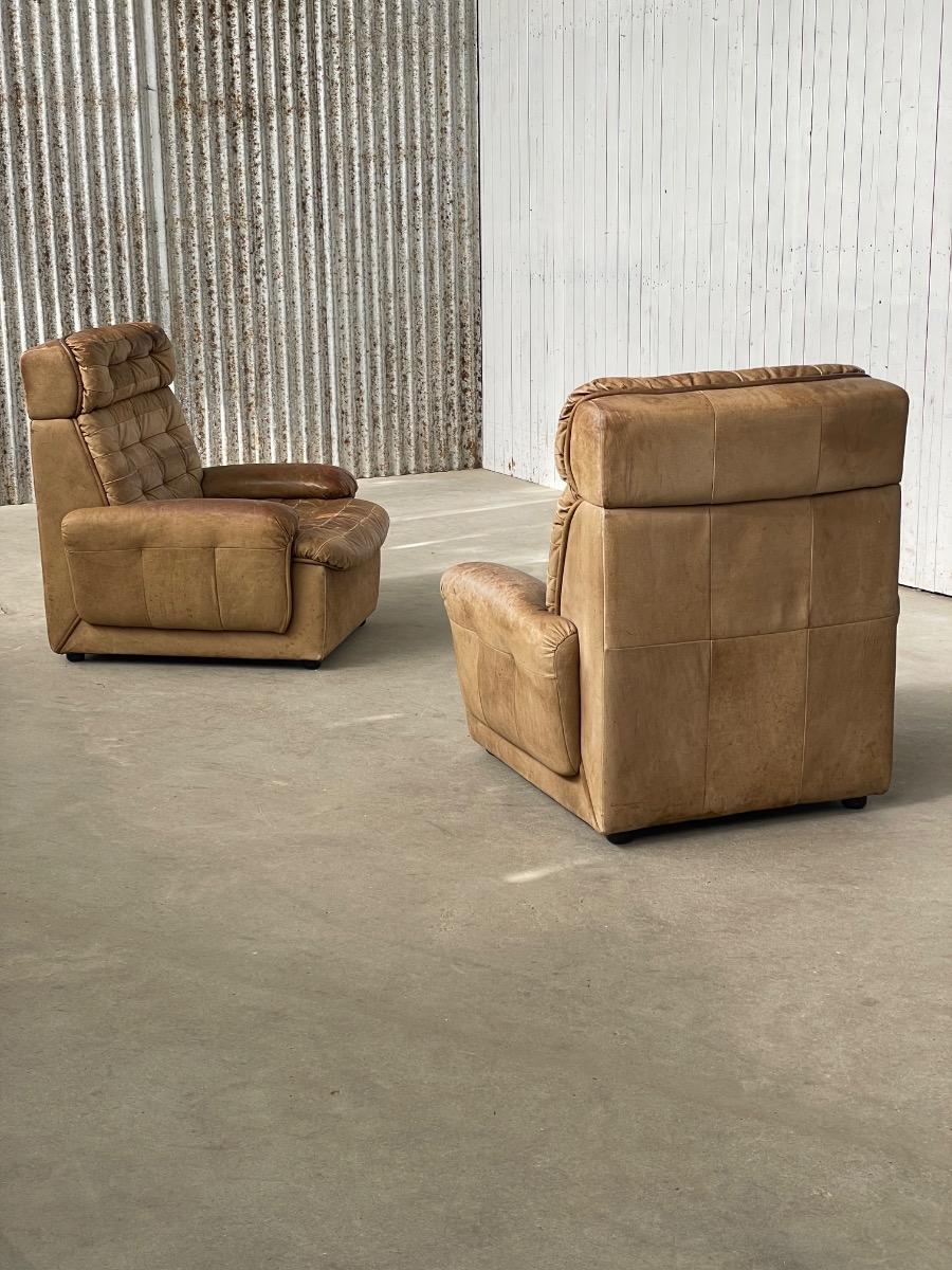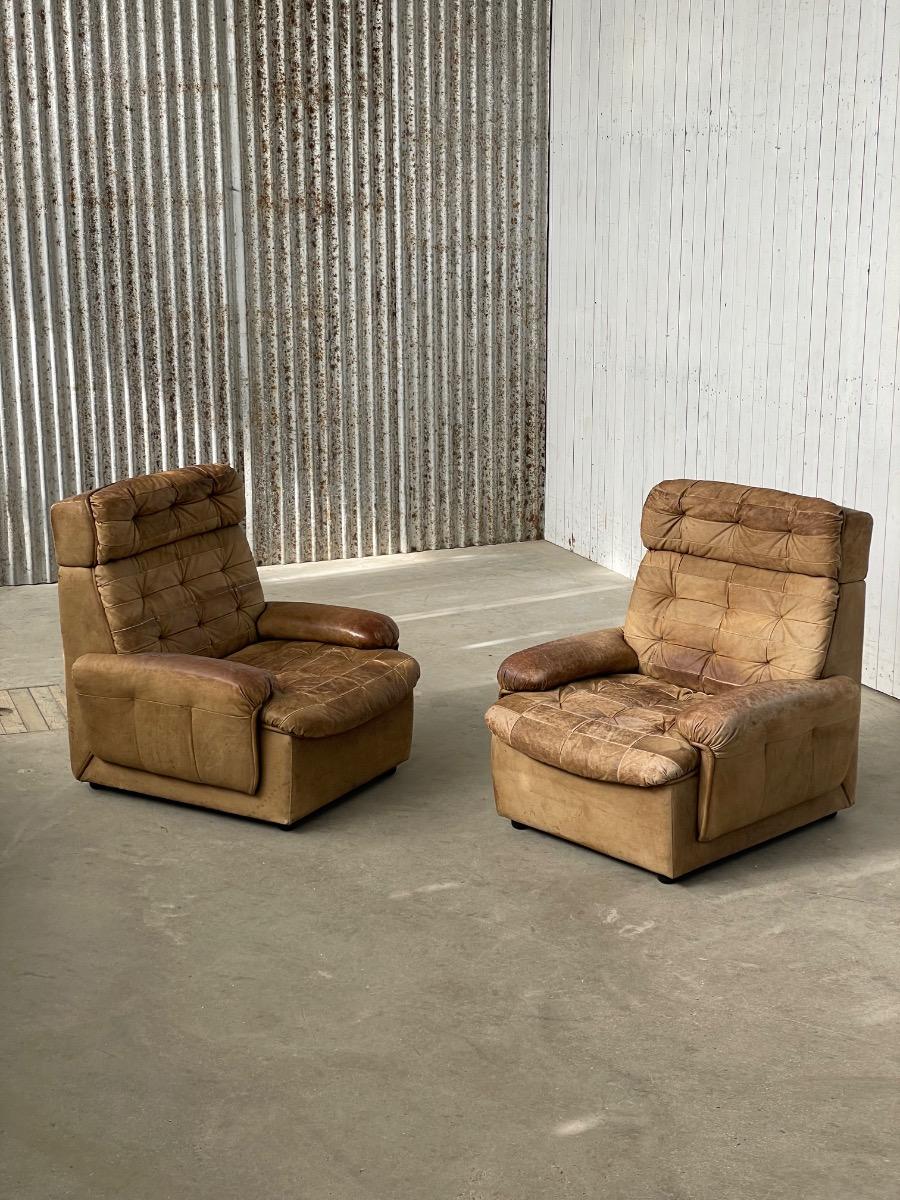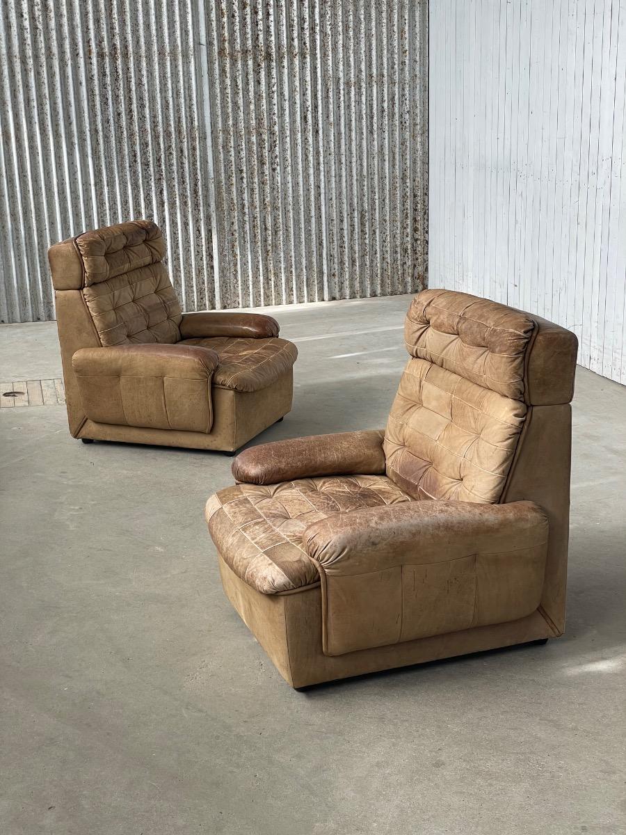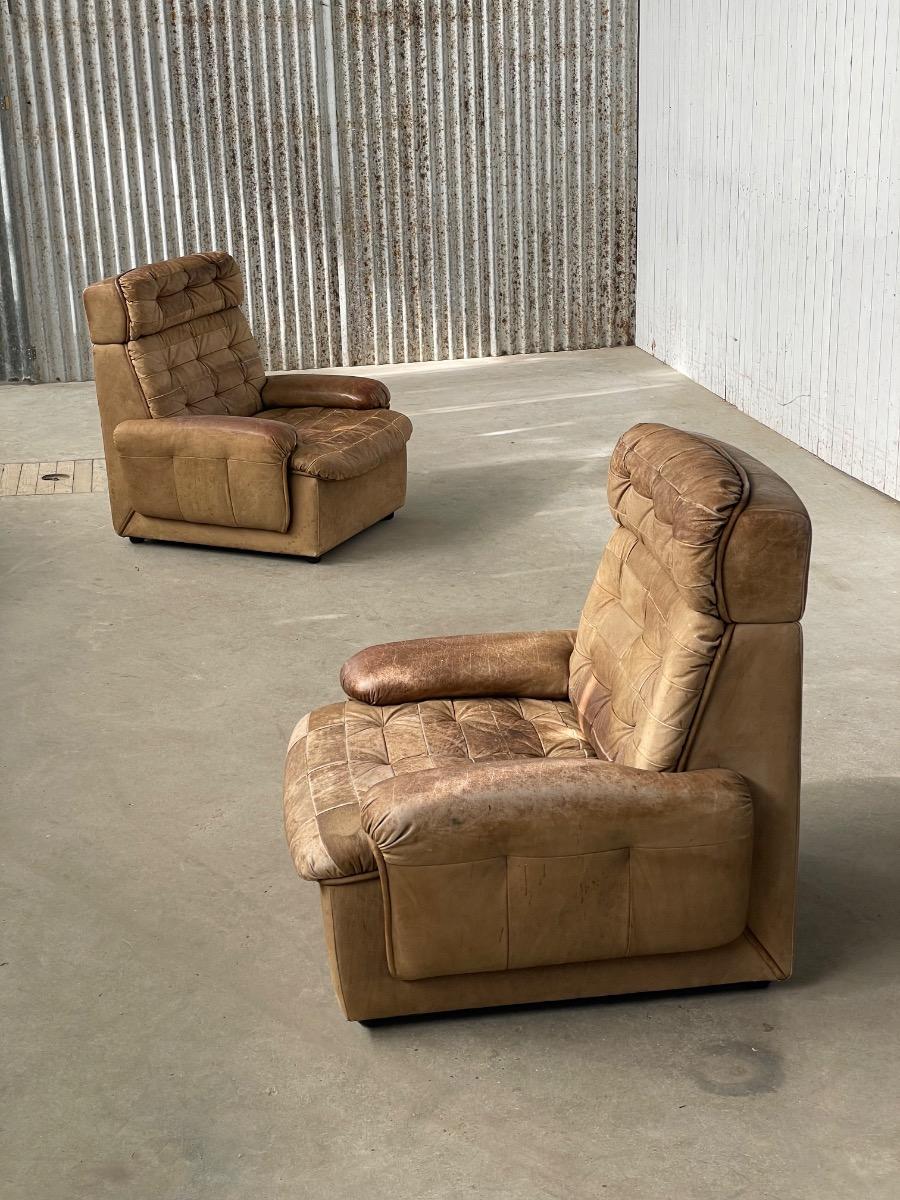 Set vintage armstoelen in bruin patchwork leer 1970