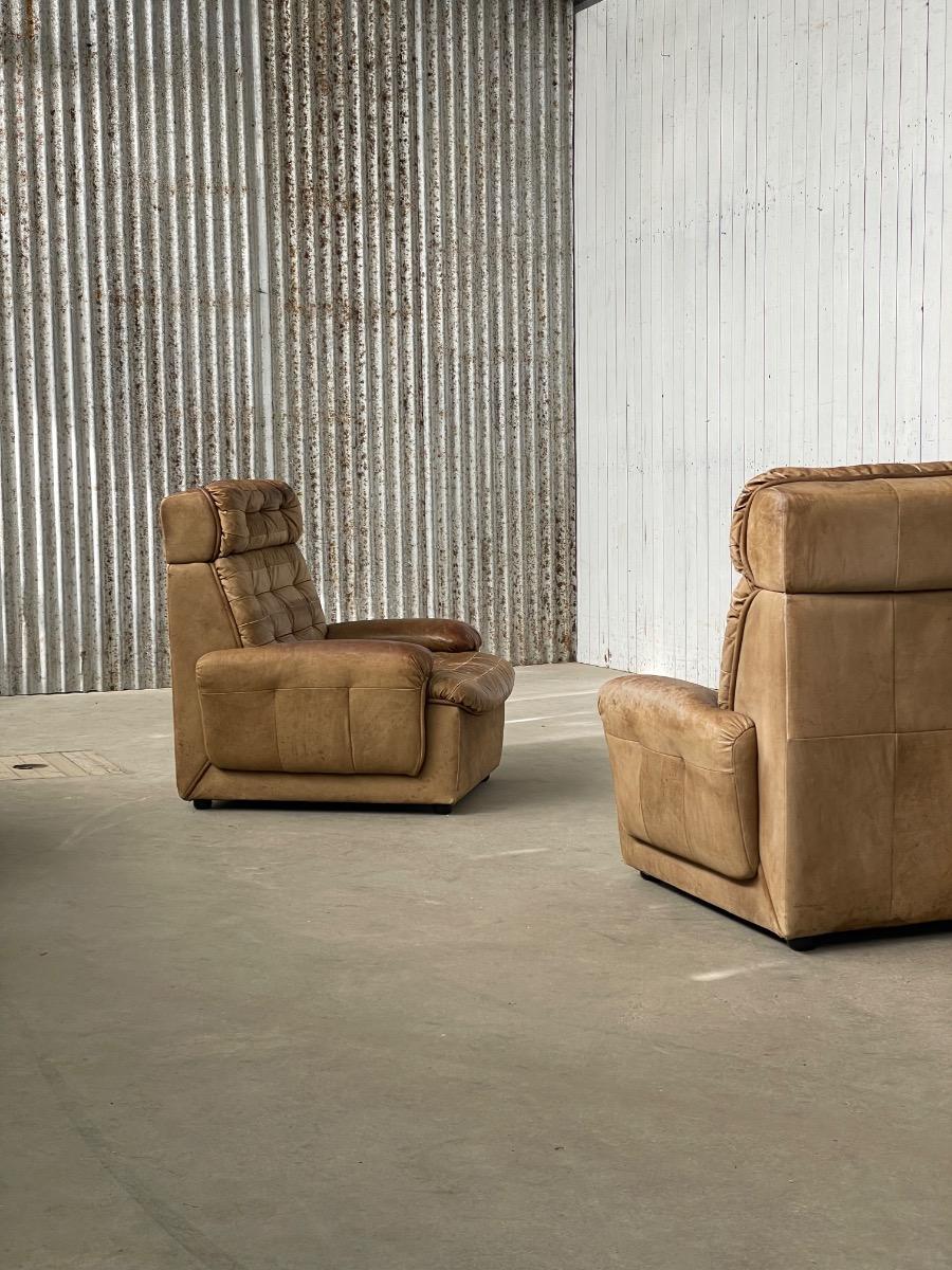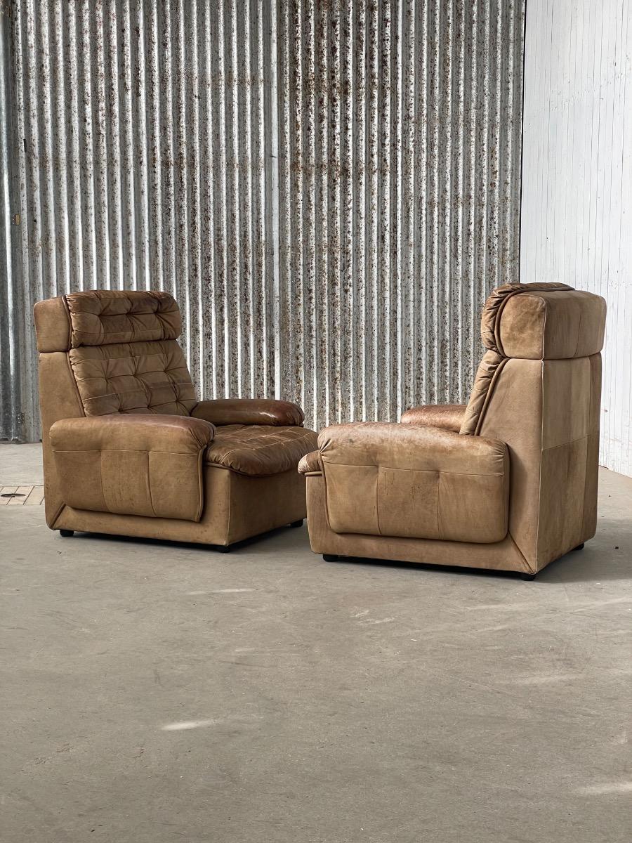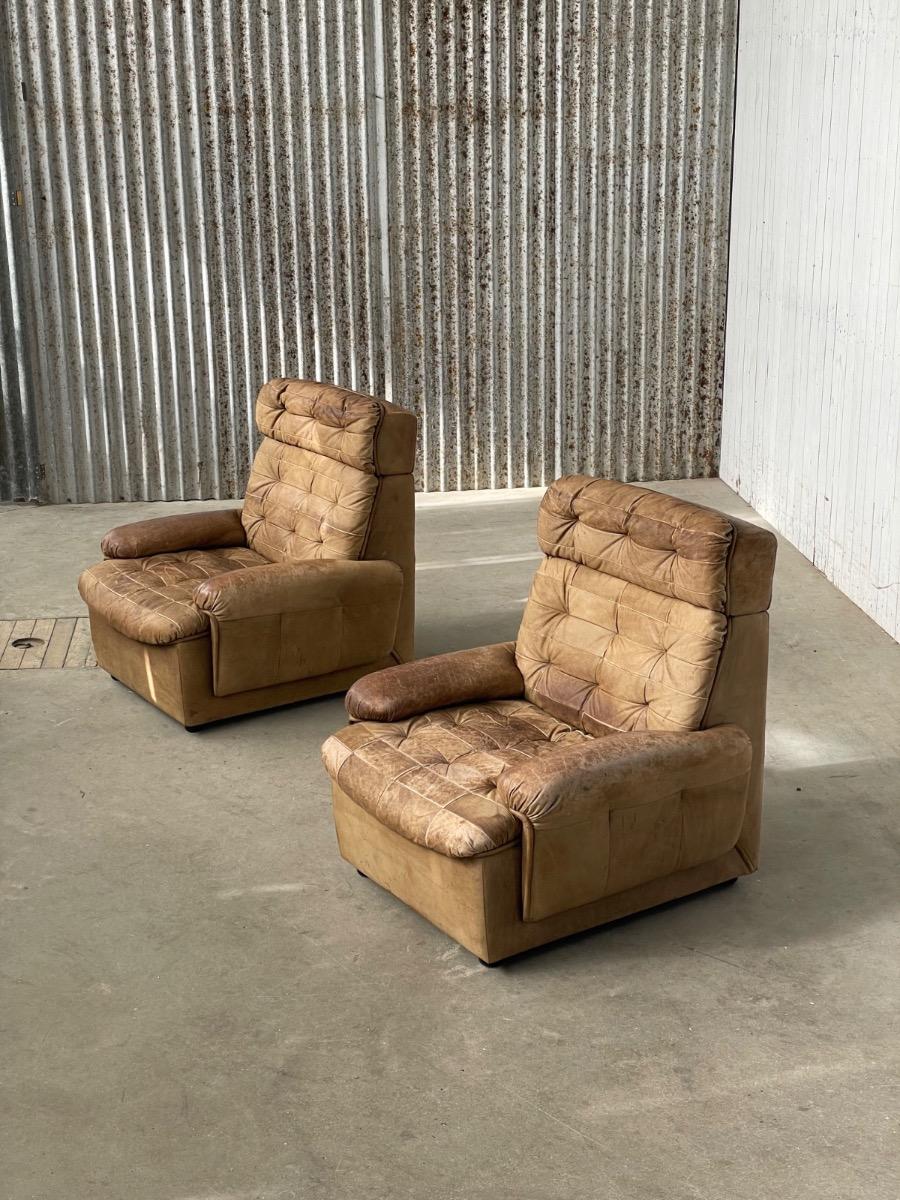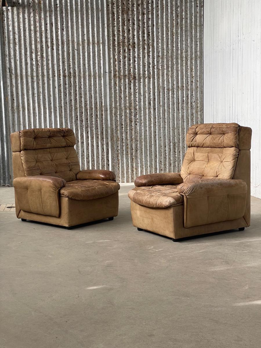 Set vintage armstoelen in bruin patchwork leer 1970