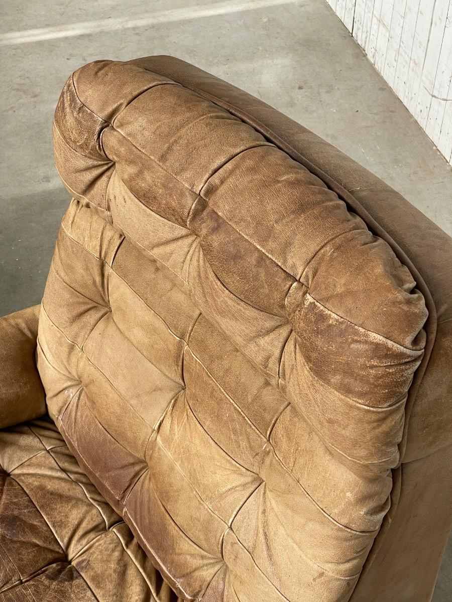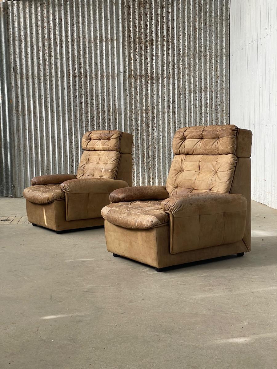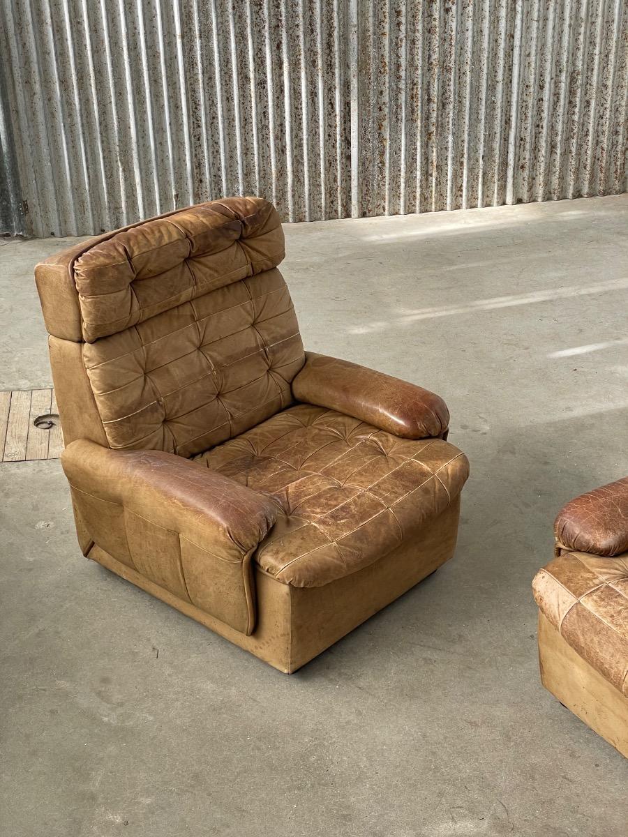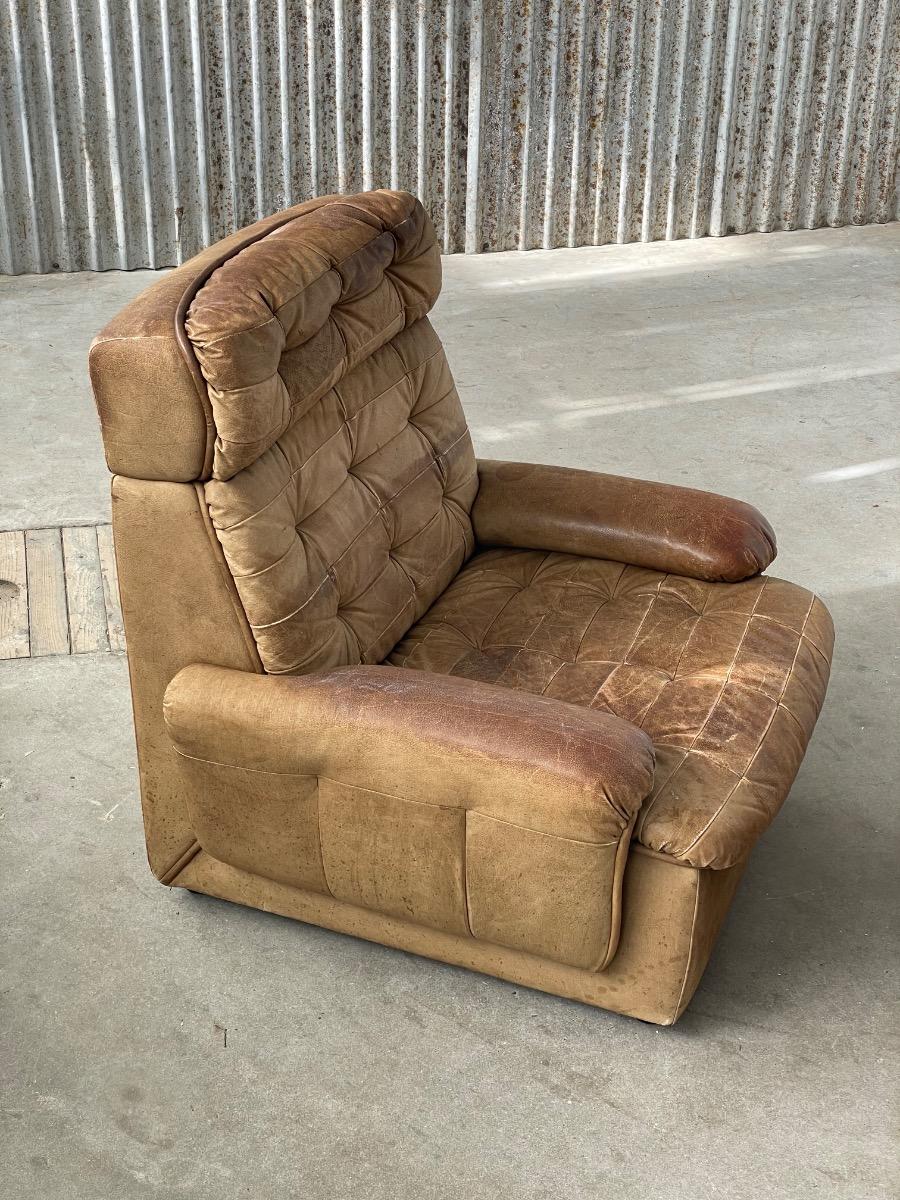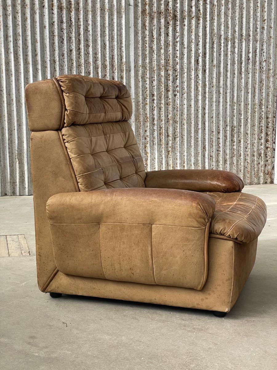 Set vintage armstoelen in bruin patchwork leer 1970