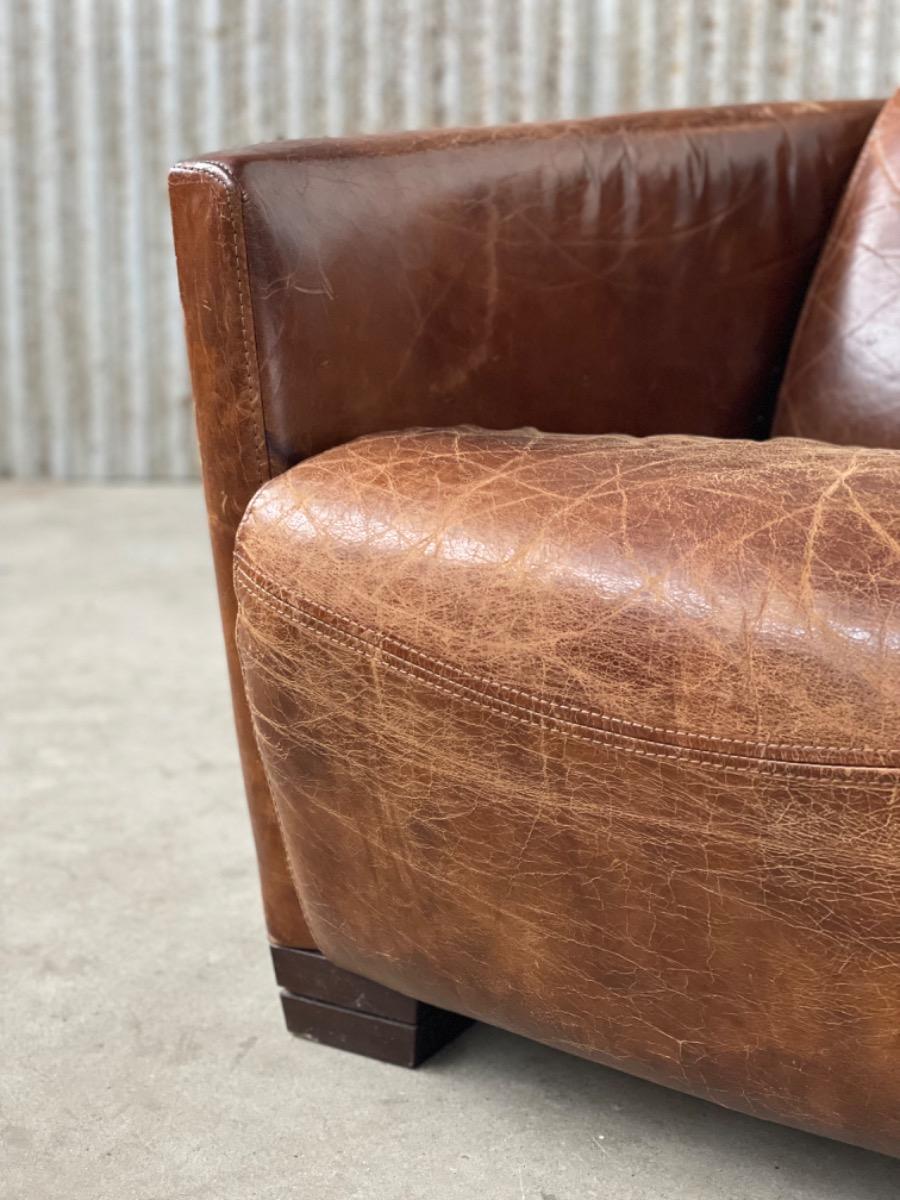 Art deco style leather armchair Aviator dark brown leather, 1990s