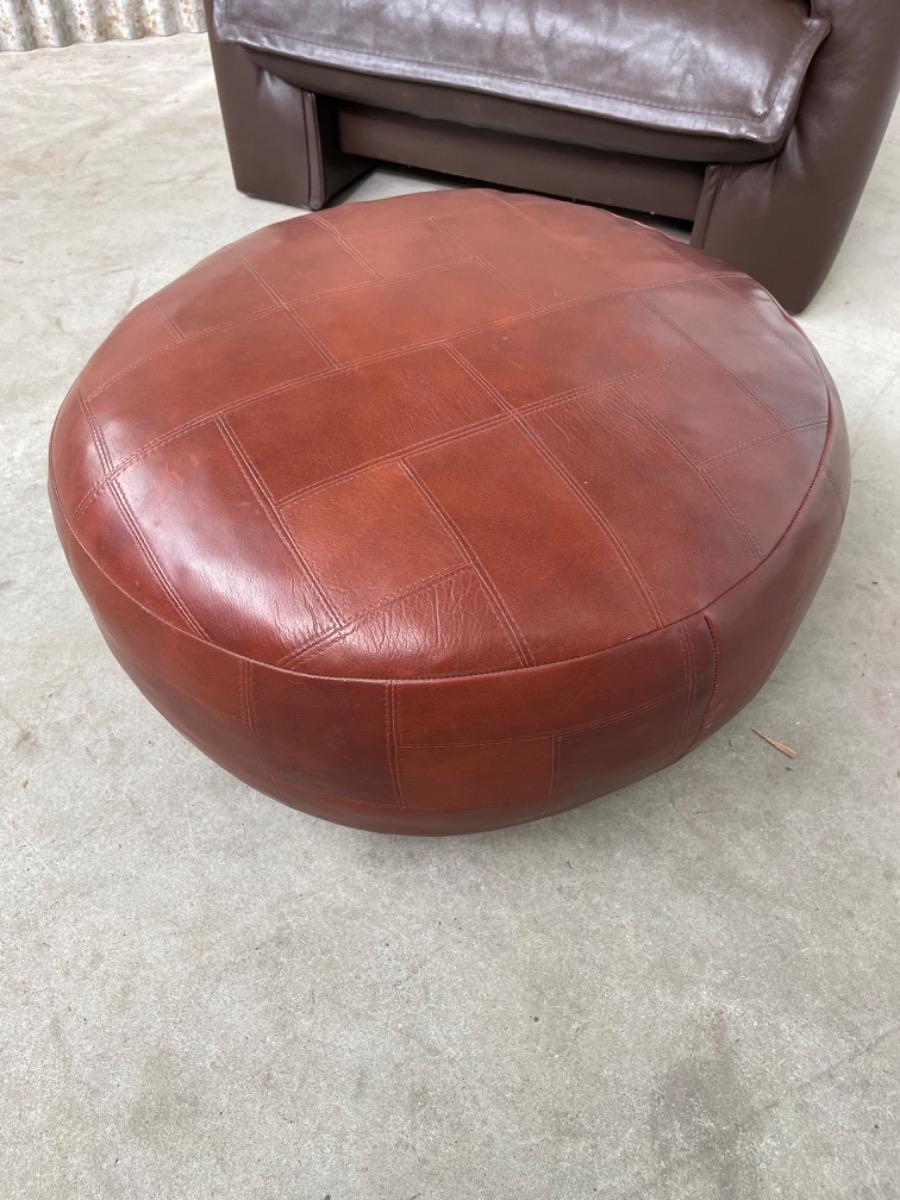 1 vintage Footstool, in Leather midcentury, in Good condition