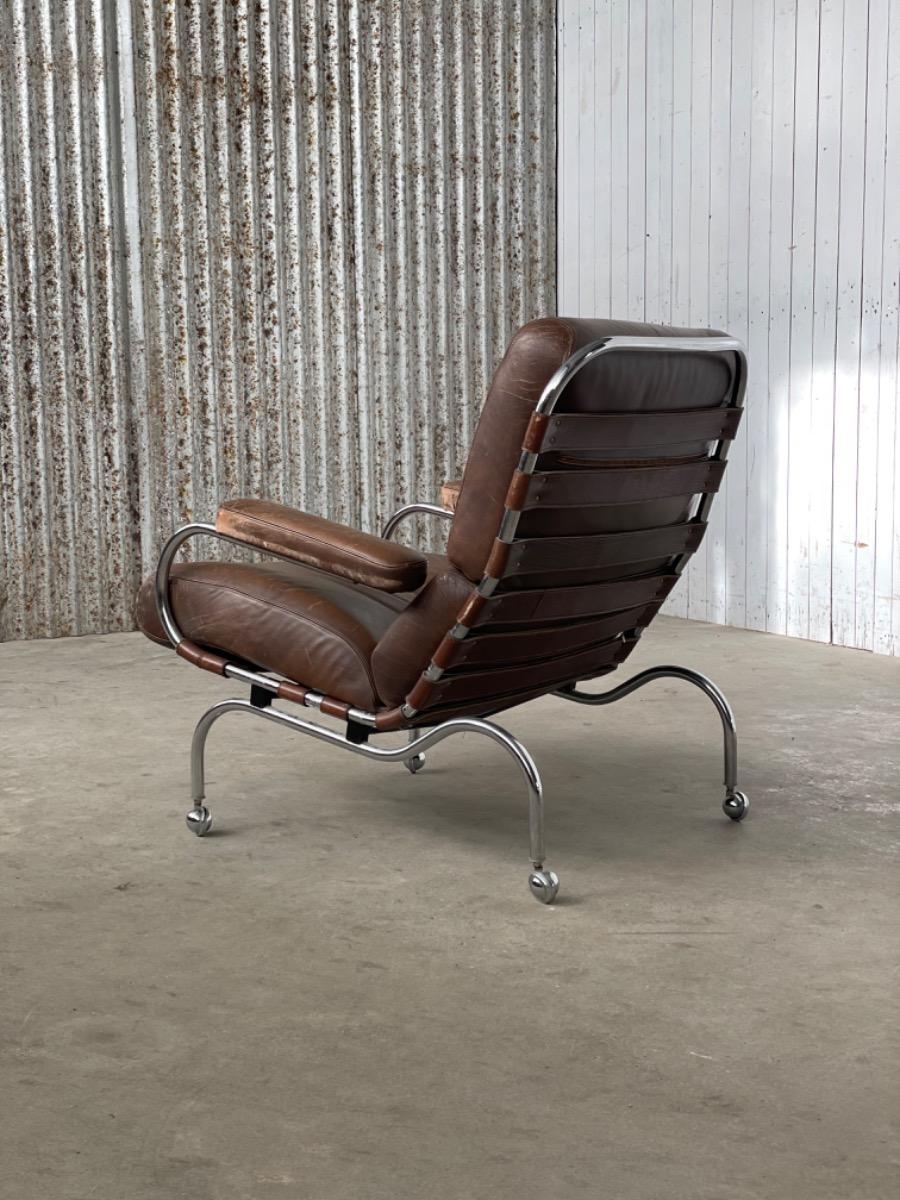 Bauhaus lounge fauteuil op wielen in bruin leer, 1940