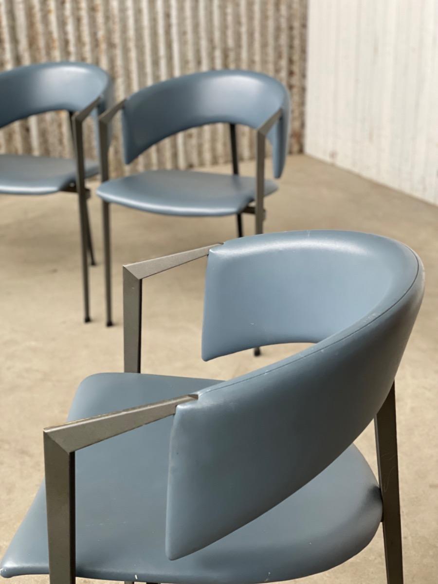 4 Eetkamerstoelen Vintage,, Castelijn Nederland en Leer en metaal, Nederland 1980, en Goede staat condition à vendre dans Stoelen, Armstoelen | Redesign Vintage