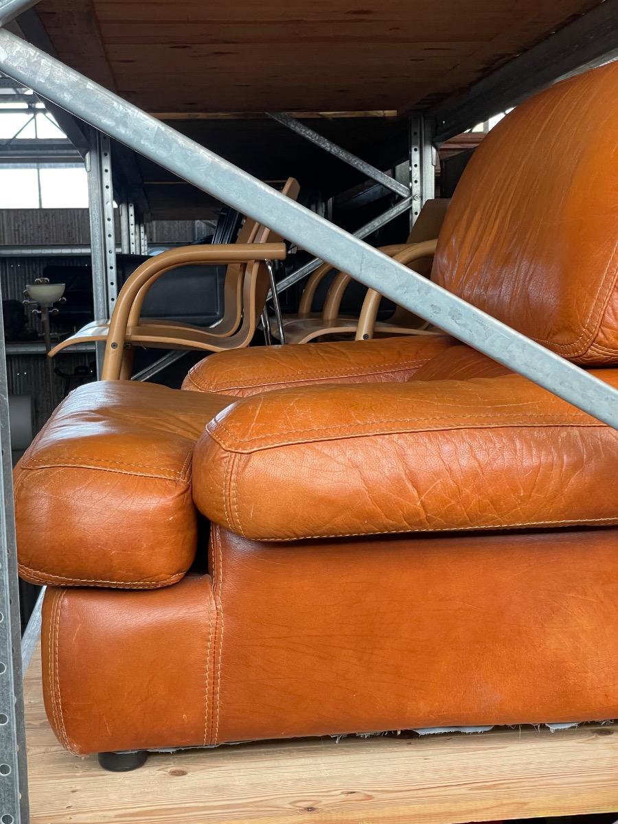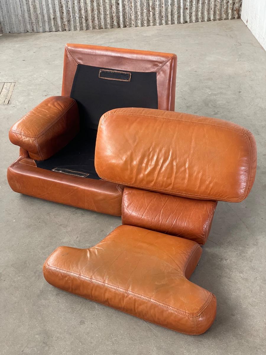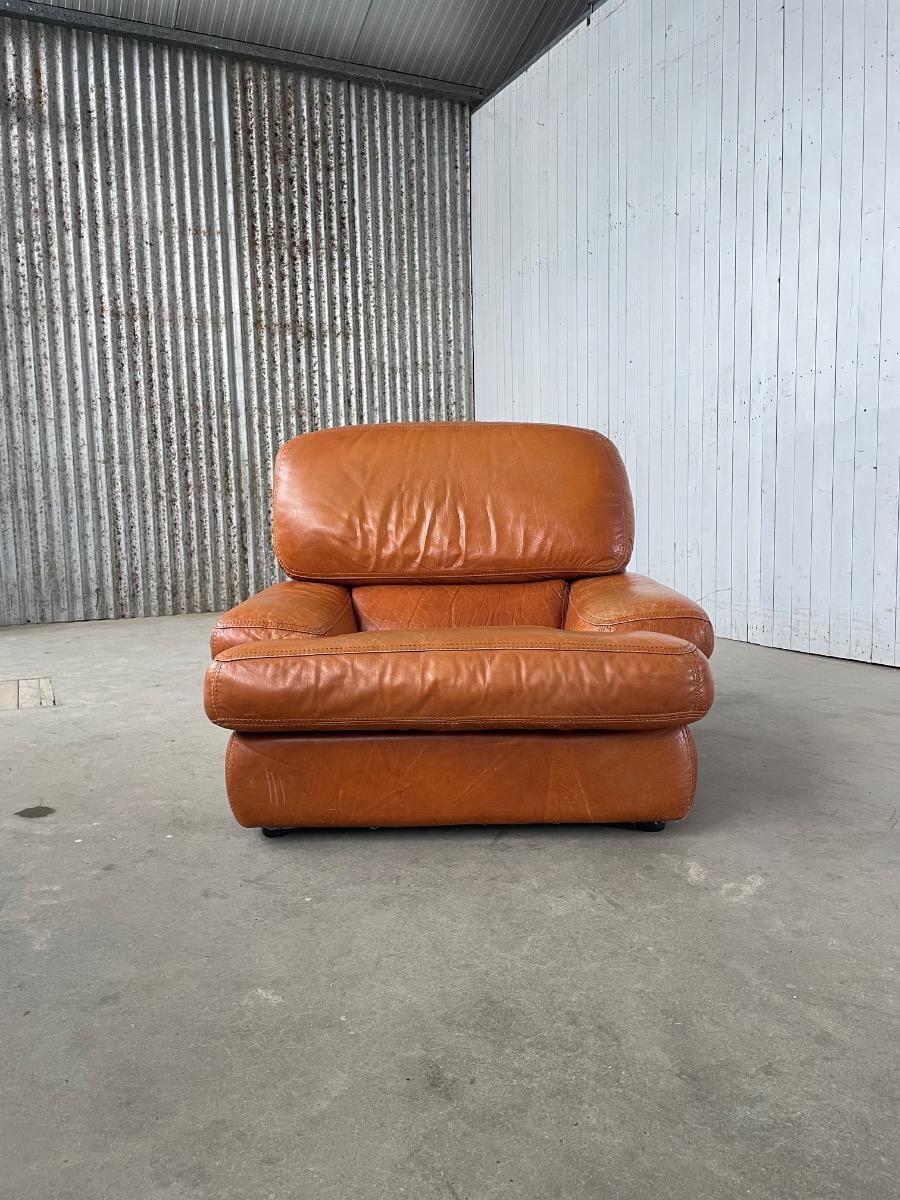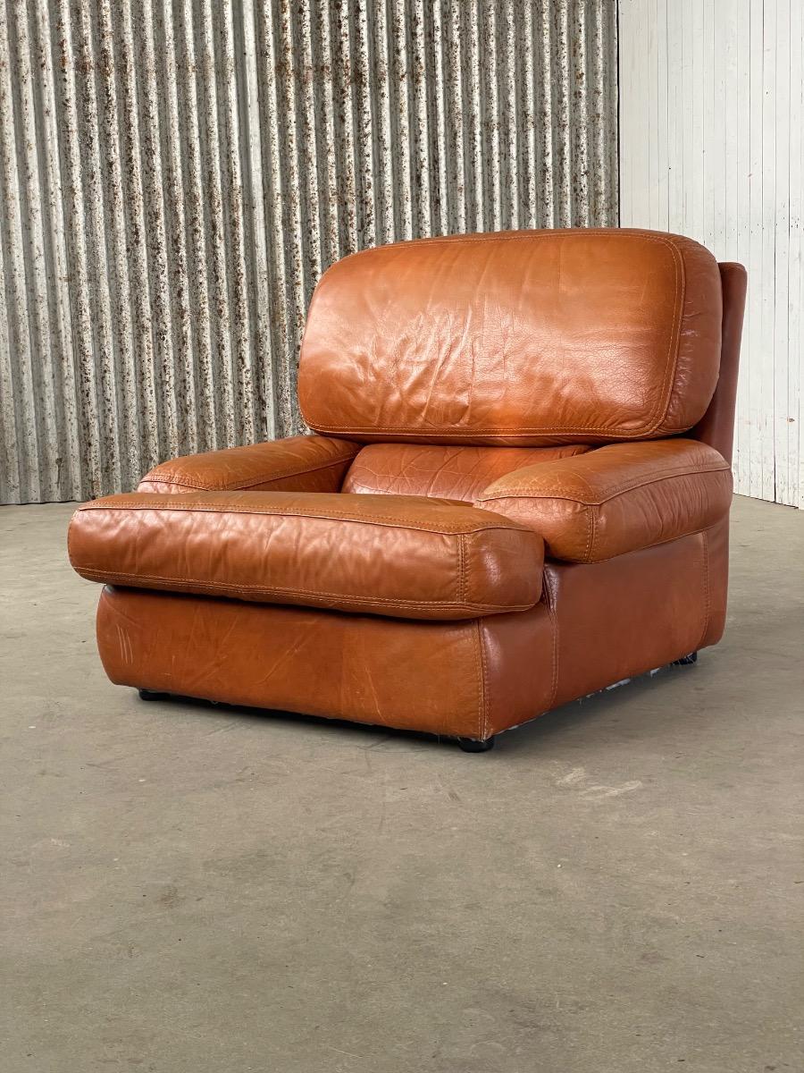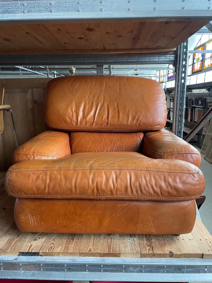 Vintage bruin leer lounge fauteuil 1970 design